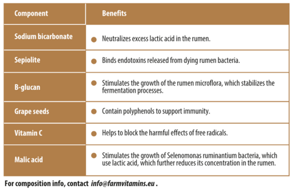 ✓ Normalizes rumen pH: helps restore normal rumen pH, improving appetite and overall health.